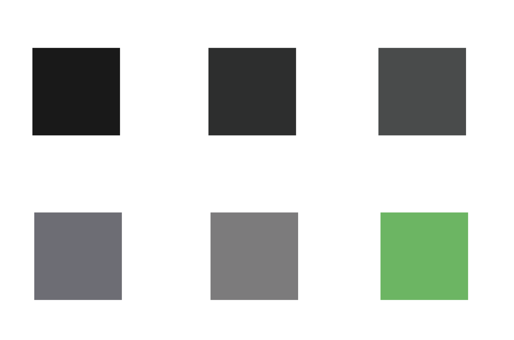 The colors were selected based on a theme seen on common kitchen appliances. These tones are associated with the stainless steel materials used for industrial-grade products and are often deemed clean. The green outlier represents the neon colors thought of when referring to futuristic spaces.
